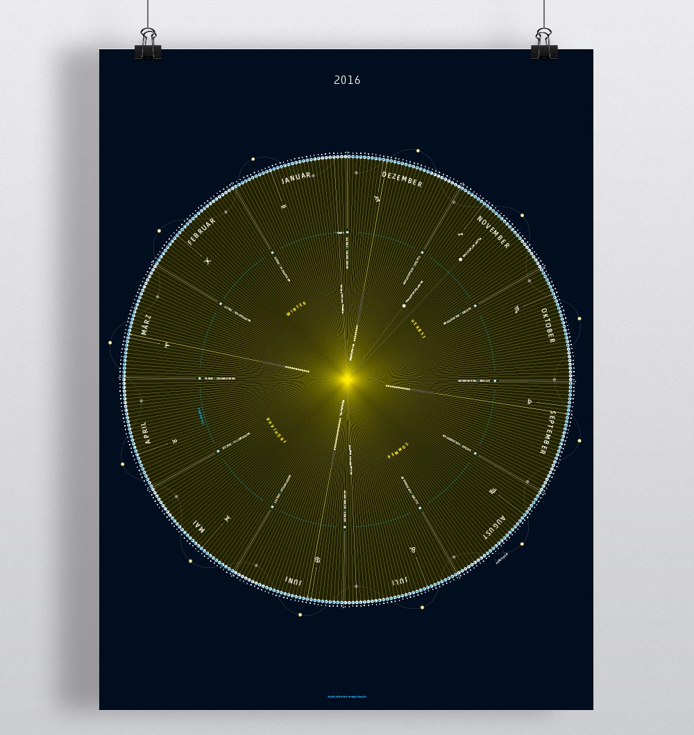 Jahreskalender mit Mondphasen und Sternzeichen, Sonnenstunden, Planetendaten, Jahrestage ...