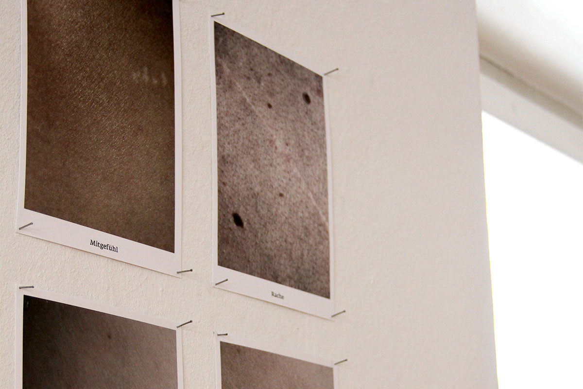 In einer Arbeitswoche in Berlin entwickelten wir Ideen, uns den 48 Affekten/Gefühlen, die Spinoza im dritten Teil seiner Ethik definiert, mit einem künstlerischen Zugang zu nähern. Längere Texte an die Wänden zu projizieren schied aus, zu ungern verlassen die Inhalte das Papier. Es sollte keine Arbeit über Spinoza entstehen, weder seine Philosophie erklären noch eine inhaltliche Interpretation anbieten. Stattdessen