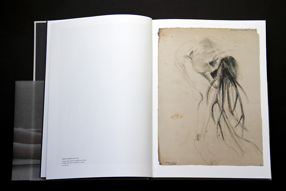 Um den Charakter der Werke zu betonen wählten wir als Schutzumschlag speziell laminiertes, 3/4 hohes Transparentpapier.