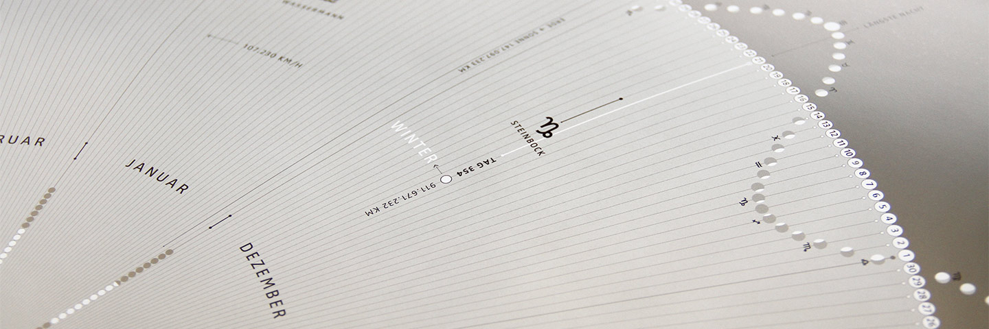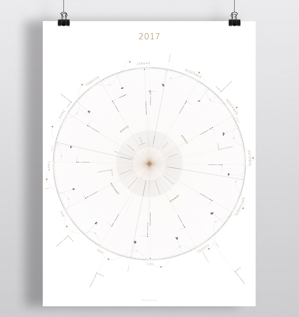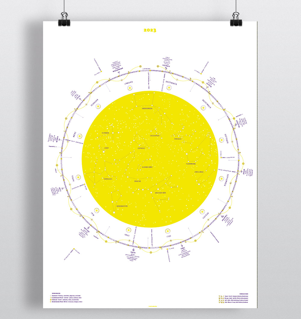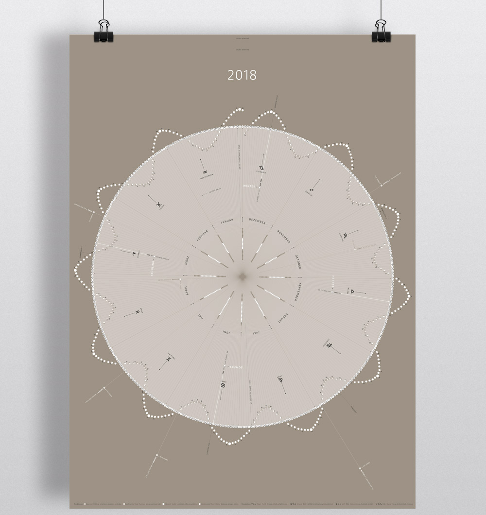 Jahreskalender mit Mondphasen und Sternzeichen, Sonnenstunden, Planetendaten, Jahrestage ...