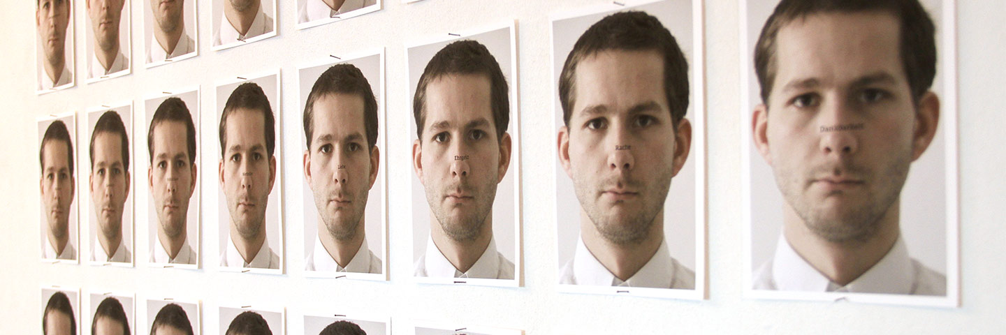 ersten Serie belegen sie Gesichter aus einer Video-sequenz von 2 Sekunden. Die zweite Serie, im Raum um zwei Säulen-texte angeordnet, zeigt die Körperebene von 48 Menschen.