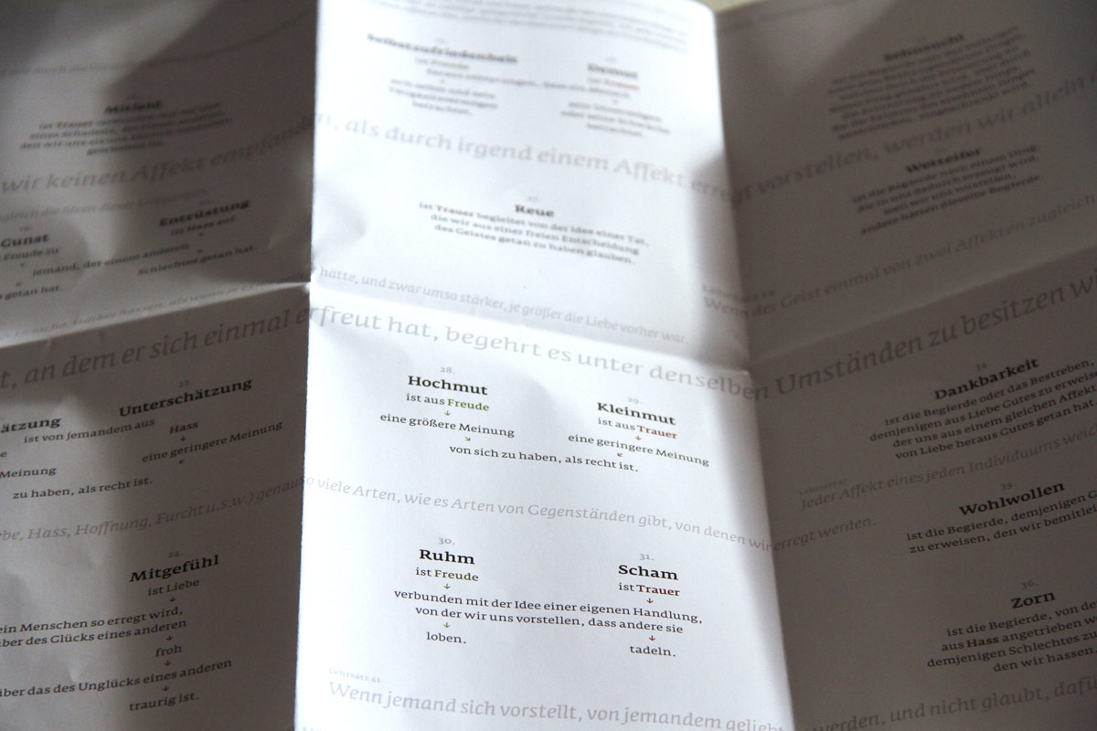 Originaltexte von Spinoza haben wir auf einem Faltplakat typografisch interpretiert und in einer Auflage von 250