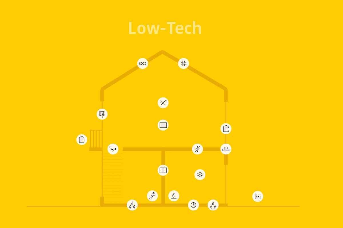 für die 18 wichtigsten Komponenten von Low-Tech Gebäuden